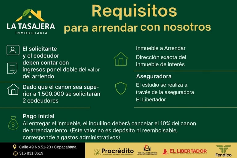 CL. 49 # 51-23 Copacabana- Antioquia | PBX 604 453 2440| ARRENDAMIENTOS.LATASAJERA@GMAIL.COM